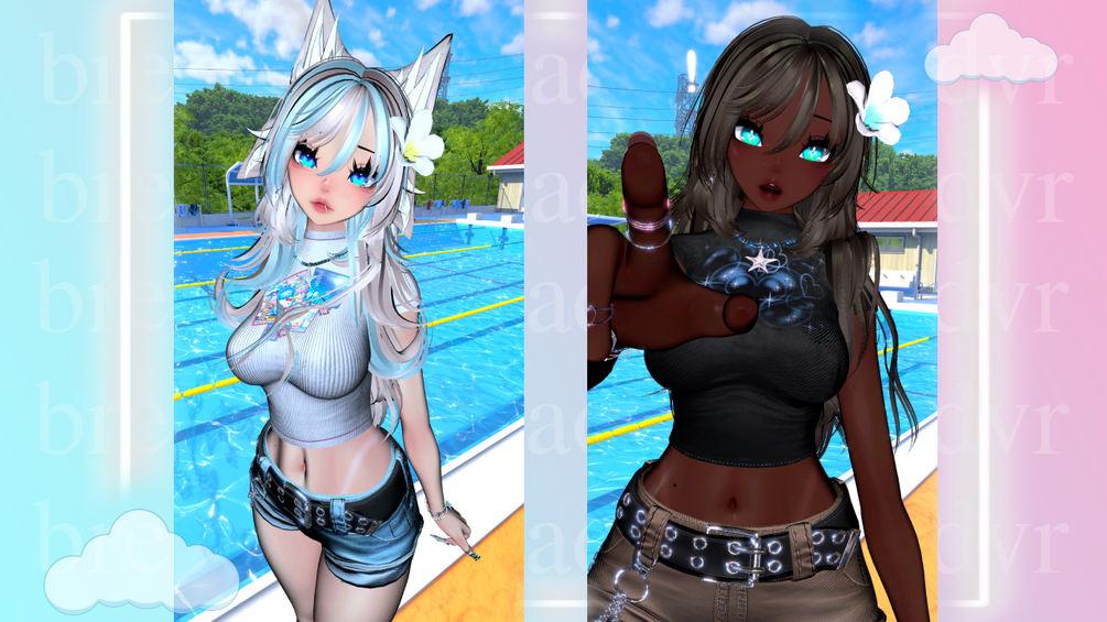 HEAD: sleepyvrc | BODY: zinpia | HAIR DOWN: Saikura | HAIR UP: nessyy. | EARS: TeddyGQ | FLOWER: Larens | CANDY: kuuderekitten♡ | EARRINGS: meeva | NECKLACE: not Sache | SHIRT: sickywvirtual | BRACELET1: 나리 | BRACELET2: galaxy.creations | NAILS: ana0420 | SHORTS: nessyy. | BIKINI OUTFIT: sickywvirtual | BIKINI BOTTOMS: Grilled Cheese | HEELS 1: Wylo | HEELS 2: Bobster | ROBE: rinebean | RINGS: sockembopem |